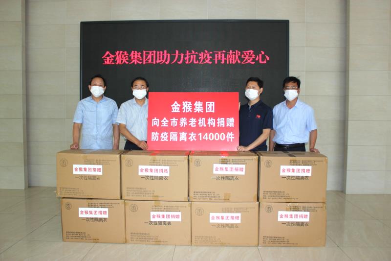 6月28日,金猴集團向威海市慈善總會捐贈14000件隔離衣,定向用于全市養(yǎng)老機構抗擊疫情,市民政局黨組書記、局長、市慈善總會常務副會長欒波從集團紀委書記、工會主席鄒曉伍手中接過《捐贈意向書》和隔離衣。