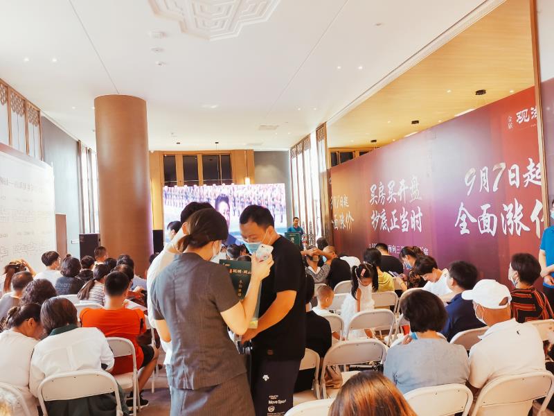 “鈴鈴鈴……”,9月6日凌晨3點(diǎn)50分,金猴觀湖閱山項(xiàng)目案場經(jīng)理郝金鑫接到夜班保安電話:“郝經(jīng)理,現(xiàn)場已經(jīng)有不少客戶在排隊(duì)了,您趕緊安排人早點(diǎn)過來吧”。得到消息后,郝經(jīng)理立即通知案場全體人員提前3個(gè)小時(shí)進(jìn)入了“備戰(zhàn)”狀態(tài)。雖然對閱山區(qū)開盤當(dāng)日會(huì)有客戶提早前來排隊(duì)領(lǐng)號(hào)有所預(yù)判,也提前在營銷中心門前準(zhǔn)備了椅子、太陽傘、水、月餅、水果等物品,但客戶這么急切,提前這么早前來排隊(duì)領(lǐng)號(hào)還是出乎了大家的意料。