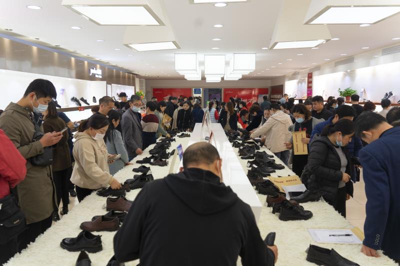 上午九點(diǎn),選樣活動正式開始。經(jīng)銷商們一走進(jìn)大廳,目光隨即被頗具特色的展廳布置所吸引,大廳中心分三部分陳列,包括男鞋區(qū)、女鞋區(qū)和陳列展示區(qū),柔和的燈光讓整個大廳顯得更加美觀溫馨。此次新品發(fā)布會上春季新款男鞋和女鞋樣品豐富、時尚新穎、色彩多樣,無論是女士通勤、休閑款,還是男士商務(wù)、休閑款,應(yīng)有盡有。其中,老爹鞋、小白鞋、樂福鞋、飛織鞋等休閑款式面向年輕顧客群,滿足了經(jīng)銷商多方位的選擇需求。