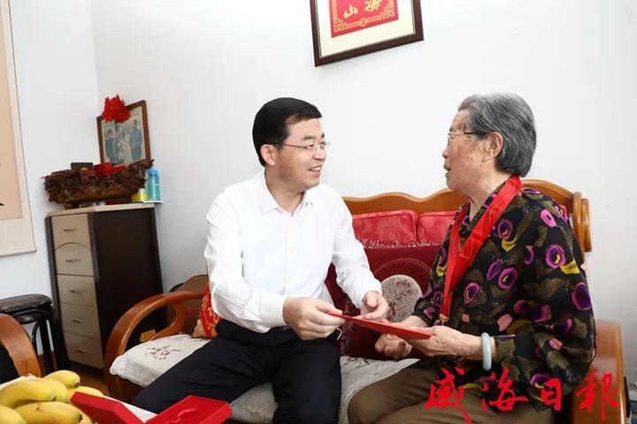 6月22日,在慶祝中國共產(chǎn)黨建黨100周年前夕,威海市委書記張海波走訪慰問我公司老黨員高素貞,為她佩戴“光榮在黨50年”紀(jì)念章,并祝福老人健康長壽、闔家幸福。