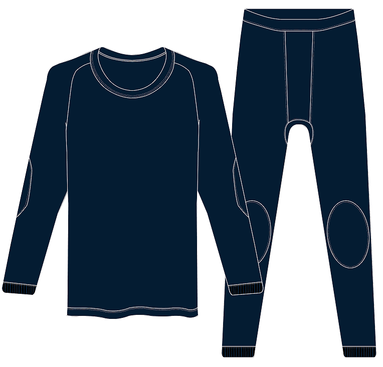 整體顏色為藏青色,款式為貼身穿著的內衣式,分為上下衣結構。采用具有阻燃、防靜電、舒適透氣等功能的針織面料。